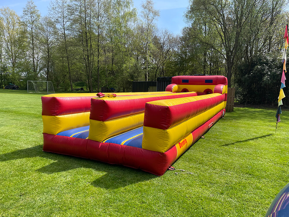 Deze populaire opblaasbare attractie zorgt voor actie, competitie en veel lachende gezichten. Perfect voor sportdagen, zeskampen, buurtfeesten, sportclubs, bedrijfsuitjes en evenementen.